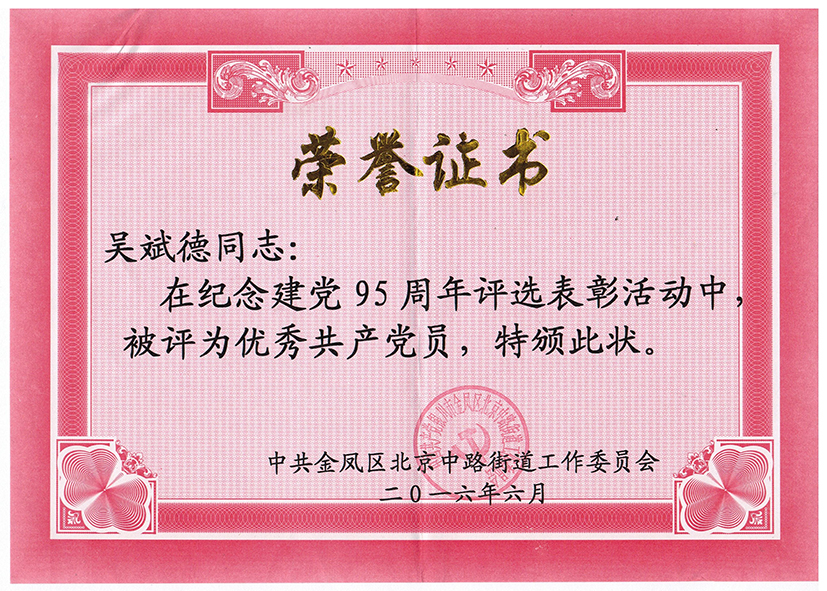 吳斌德榮獲優秀共產黨員