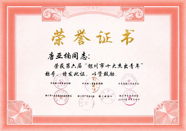 銀川市十大杰出青年稱號(hào)