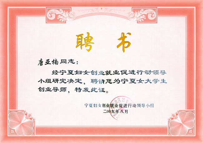 唐亞楠被評為寧夏杰出巾幗創業之星