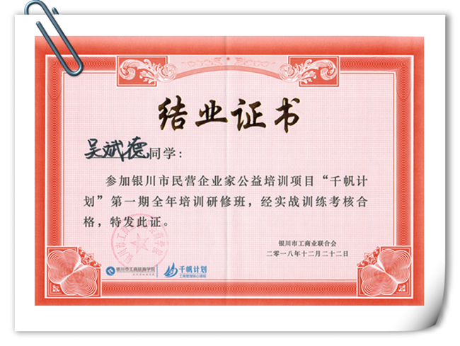 伊百盛吳斌德“千帆計劃”培訓合格結業(yè)證書