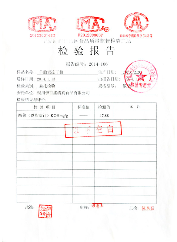 羊胎素凍干粉檢驗(yàn)報(bào)告書