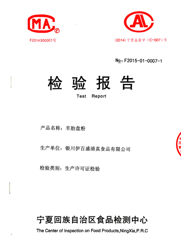 羊胎盤粉檢驗報