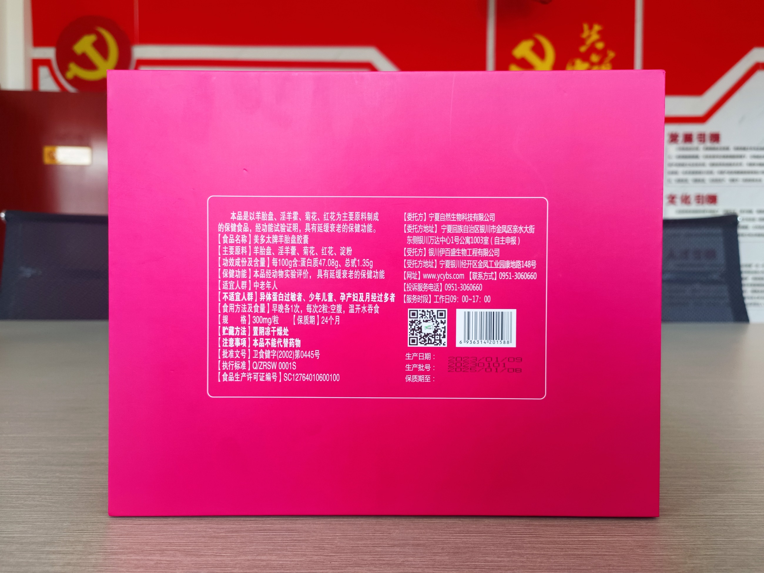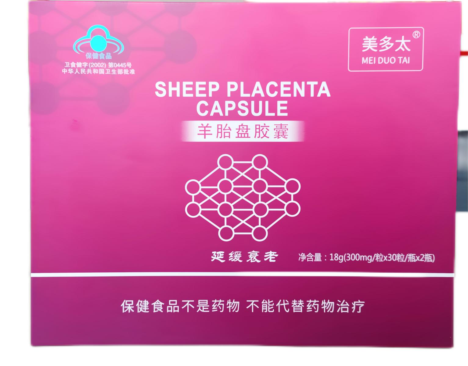本品是以羊胎盤、淫羊藿、菊花、紅花為主要原料制成的保健食品,經(jīng)功能試驗(yàn)證明,具有延緩衰老的保健功能。