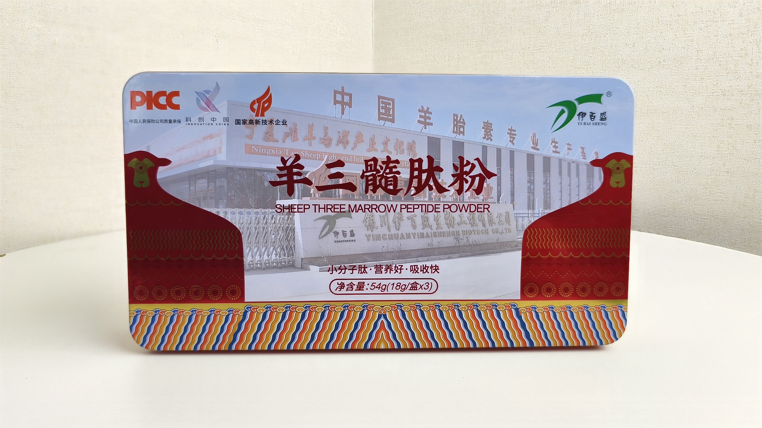 食品名稱:羊三髓肽粉產品類型: 方便食品配料:羊骨髓肽粉規格:3g/袋食用方法及食用量:每日1~2次,每次1袋,加入50ml溫開水(水溫不宜超過55°C)攪拌均勻即可食用,也可加入羊奶、谷物等食品中食用。保 質 期: 24個月執行標準: O/YBSS 0064S食品生產許可證編號: SC12764010600100生 產 商: 銀川伊百盛生物工程有限公司地址: 寧夏銀川經開區金鳳工業園康地路148